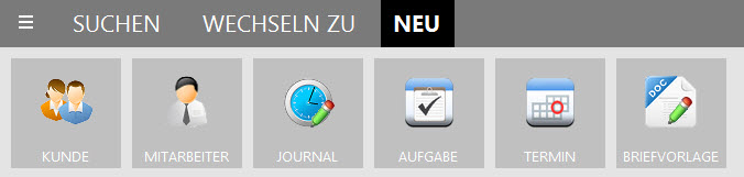 Das Hauptmenü in VisualOffice wurde auf drei wesentliche Punkte reduziert: