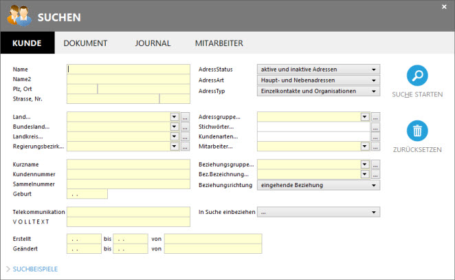 SUCHEN - Aufruf des Suchenfensters: