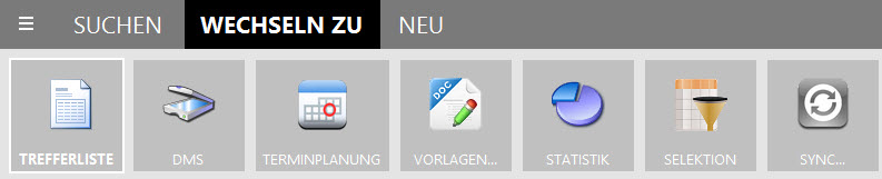 Neues Hauptmenü: SUCHEN, WECHSELN ZU, NEU