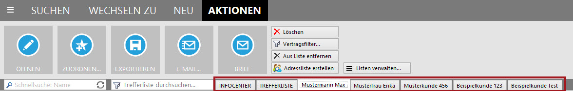 Durch die Tabreiter können Sie jetzt bequem zwischen mehreren geöffnten Kunden wechseln und