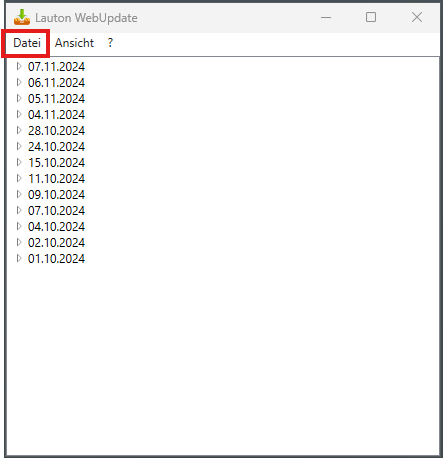 4. Klicken sie in dem Fenster von LsWebUpdate auf Datei und wählen Sie „Nach Updates suchen“