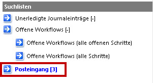 Im Info-Center (rechte Seite) können Sie unter den Suchlisten den „Posteingang“ öffnen.