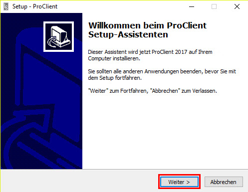 Nachdem das Datenbank-Update beendet wurde erscheint die ProClient-Benutzeranmeldung.