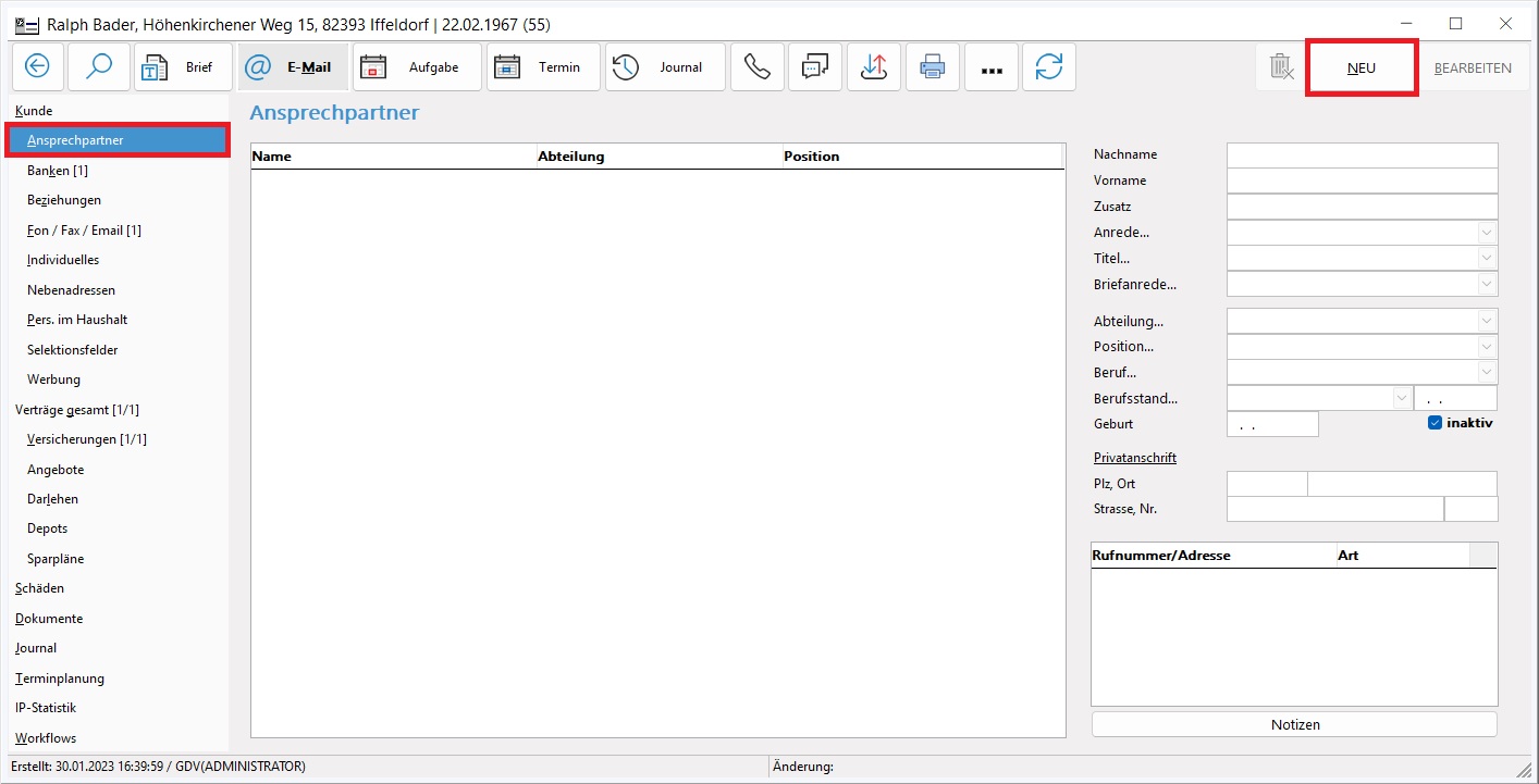 Ansprechpartner anlegen