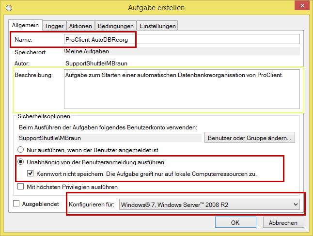 Automatische Datenbankreorganisation auf einem Server