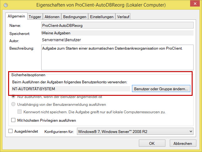 Automatische Datenbankreorganisation auf einem Server