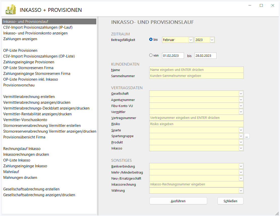 Inkasso- und Provisionslauf